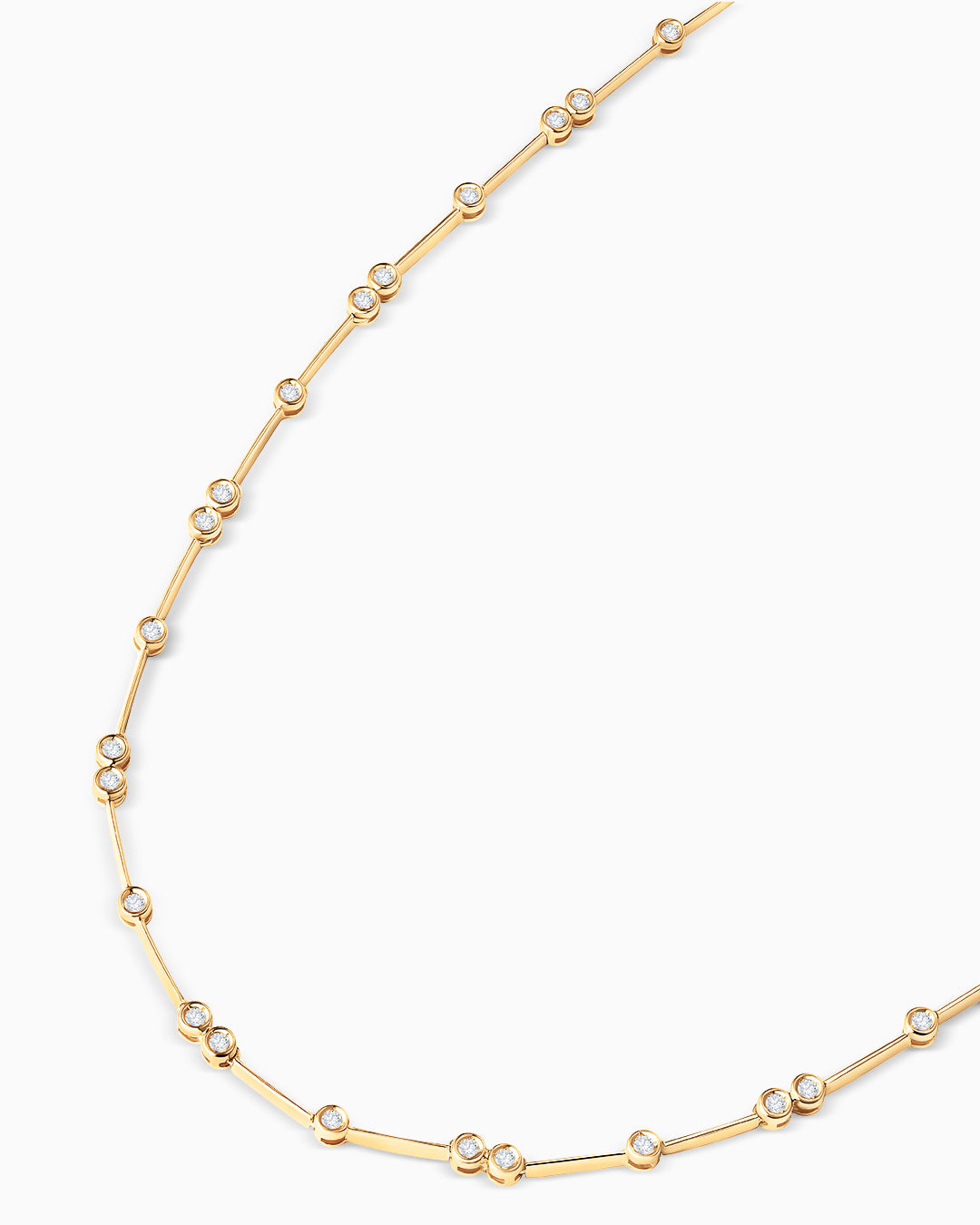A gargantilha Origine Liée da Mumit homenageia o bisel, a primeira técnica de engaste na tradição...
