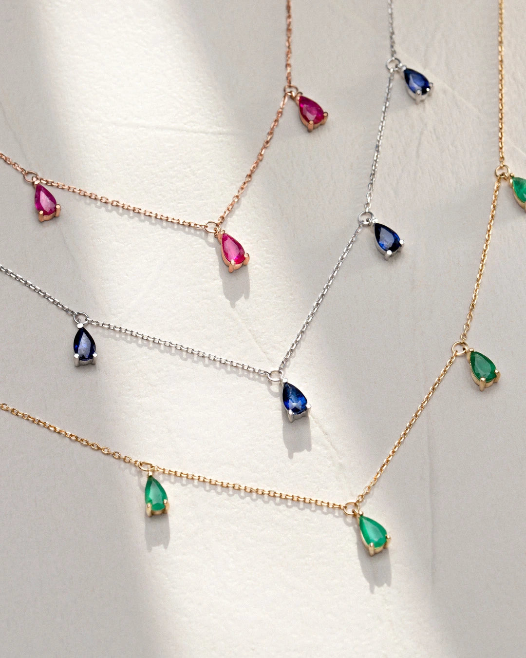 - Pedras preciosas: safiras lapidadas em formato de pêra