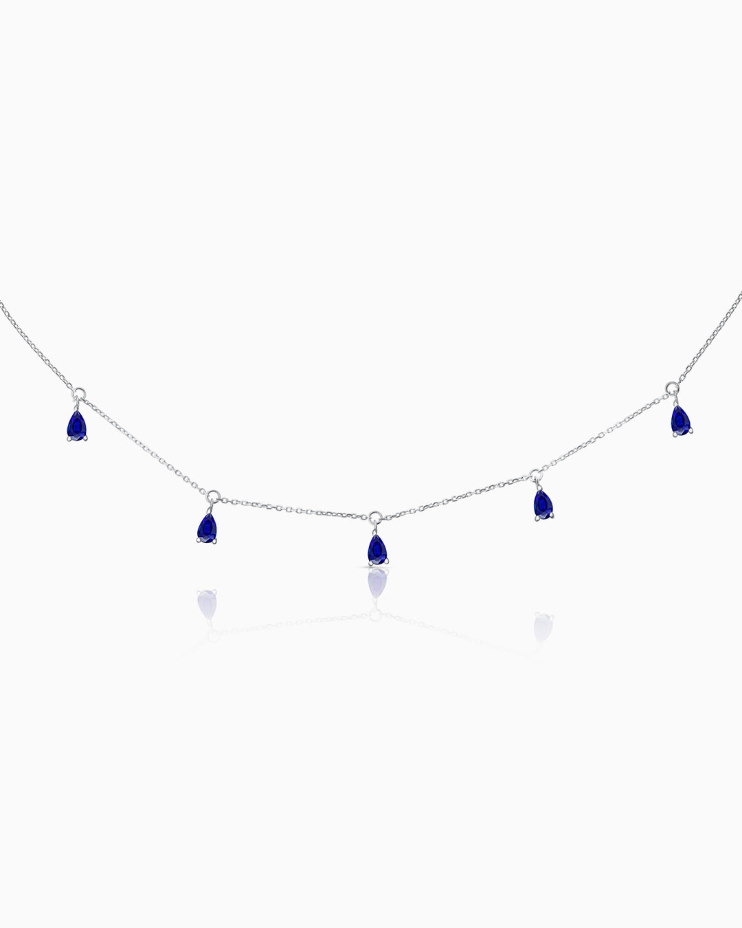 Gargantilha de safira Eternity Colors feita em ouro branco 18 quilates. O poder e a magia das cores ganham vida através do novo colar gargantilha Eternity Colors, projetado em três cores cheias de vitalidade e força. Composto por cinco magníficas safiras lapidadas em formato de pera que pendem delicadamente da corrente, traçando seu design elegante e surpreendente. Ele apresenta um fecho de mola especial criado pela Mumit e finalizado em uma delicada safira que permite que o comprimento da corrente seja ajustado conforme desejado. Esse recurso significa que a gargantilha pode ser usada como uma gargantilha ao redor do pescoço ou como uma gargantilha na altura da clavícula, permitindo infinitas possibilidades. Ideal para usar sozinho ou combinado com as outras gargantilhas da coleção.