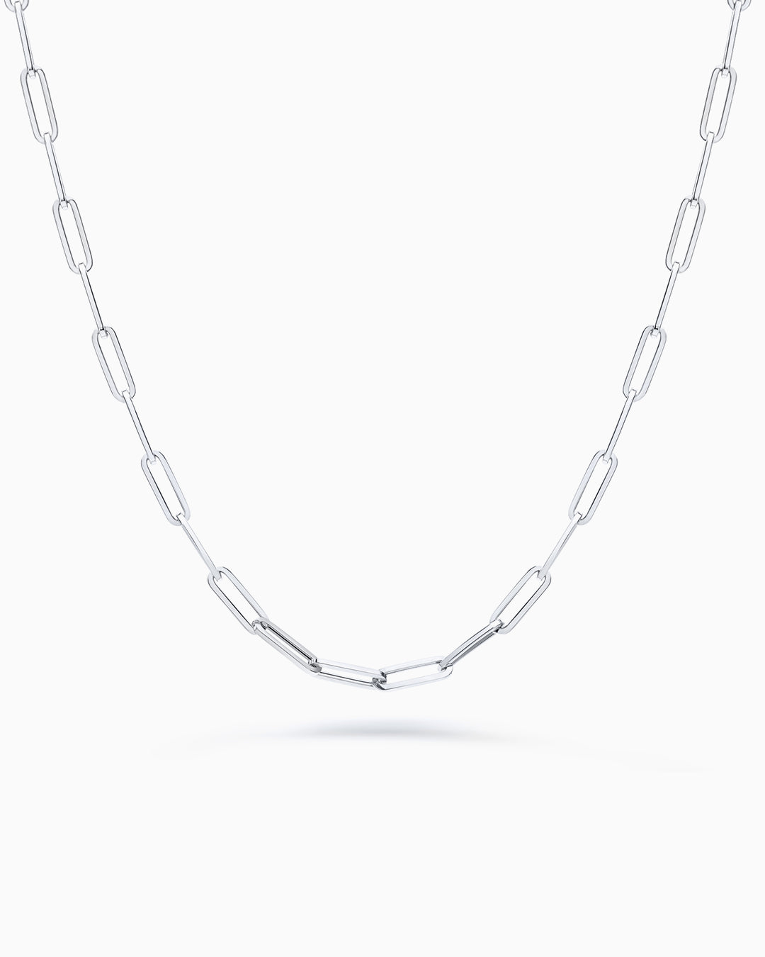 Gargantilha Links feita em ouro branco 18 quilates. A beleza da simplicidade está incorporada nesta sofisticada gargantilha. Possui uma estética de linhas suaves, proporcionada pela delicada união dos elos, com um toque de sofisticação que a diferencia de todas as outras. Esta corrente de elos alongados é a peça básica que você procurava para combinar tanto com um vestido de verão quanto com jeans, graças ao seu design versátil. Esta gargantilha tem um comprimento total de 42 cm, sendo ajustável a qualquer altura graças ao seu fecho lagosta. A gargantilha Links é uma peça de joia atemporal que você vai adorar combinar.A gargantilha Links está disponível em três versões: ouro amarelo, rosa e branco de 18 quilates.