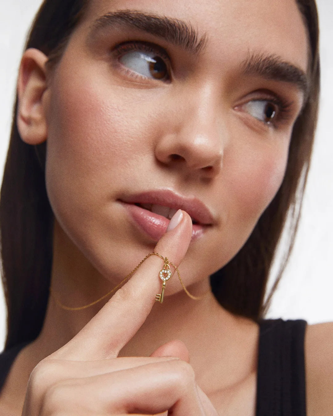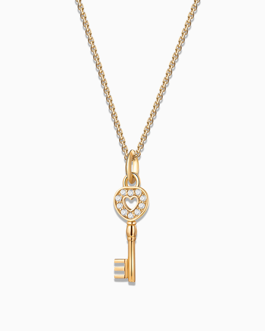Pingente Chave M em ouro amarelo 18K com diamante. Cada um dos Luxury Charms da Mumit é uma oportunidade de se conectar com suas memórias, seus sonhos mais profundos ou partes únicas de sua personalidade. Graças à durabilidade do ouro 18 quilates, este pequeno talismã de valor emocional incalculável acompanhará você por toda a vida. Além disso, o anel é um design exclusivo da Mumit, desenvolvido para obter um visual harmonioso ao combinar vários pingentes na mesma corrente. Comece sua coleção e explore o lado mais pessoal do mundo das joias. A chave é um símbolo de: amor, comprometimento, exclusividade, novos começos, espiritualidade.