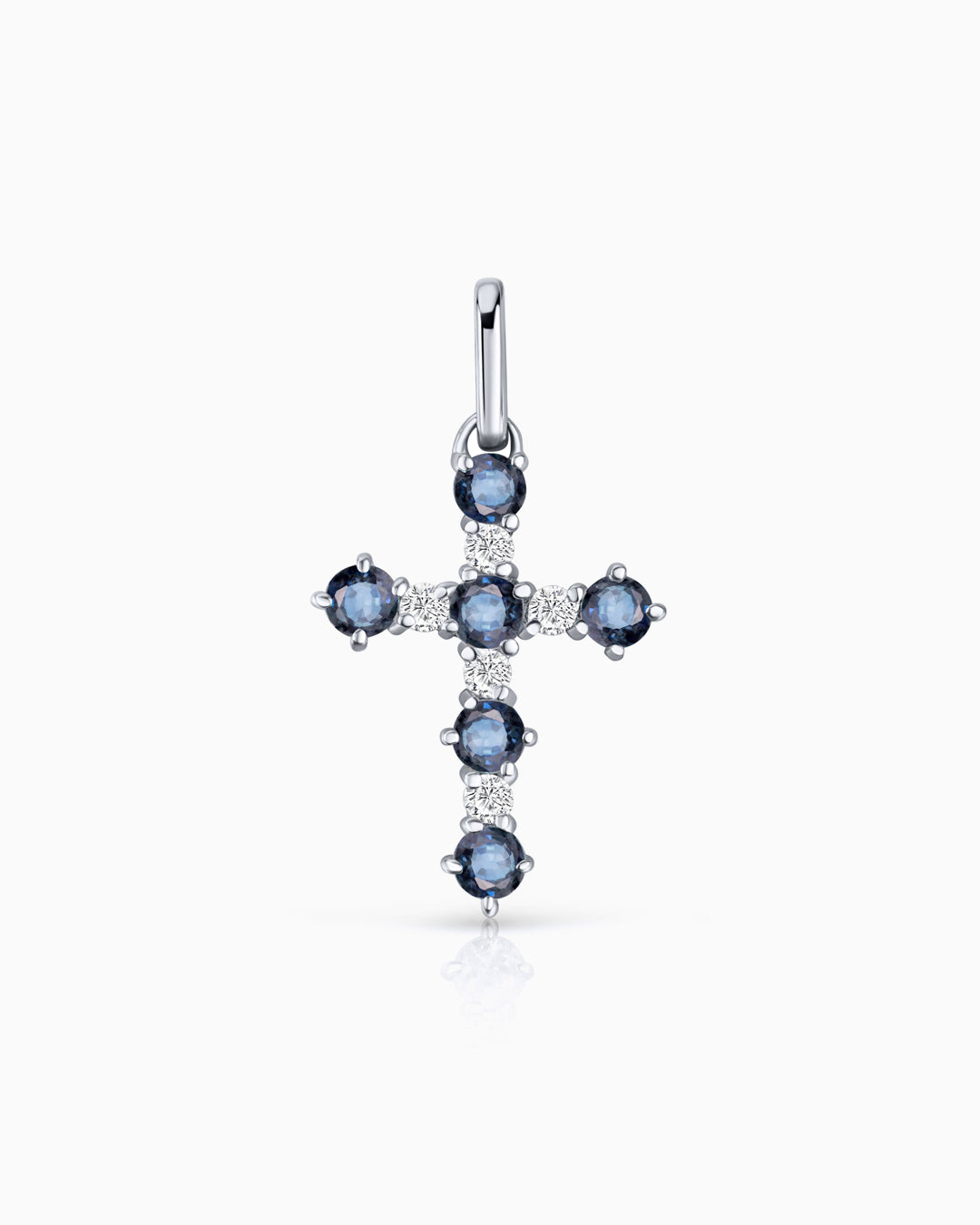 Pingente Cruz Gaia com Safiras e Diamantes em Ouro Branco 18 Kt