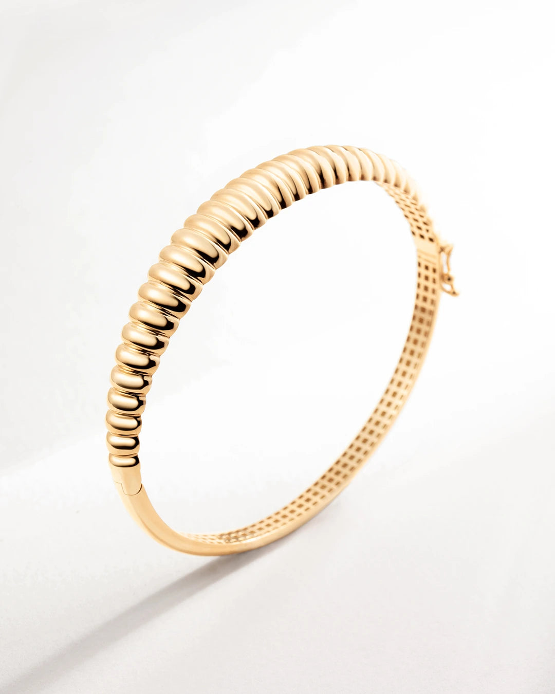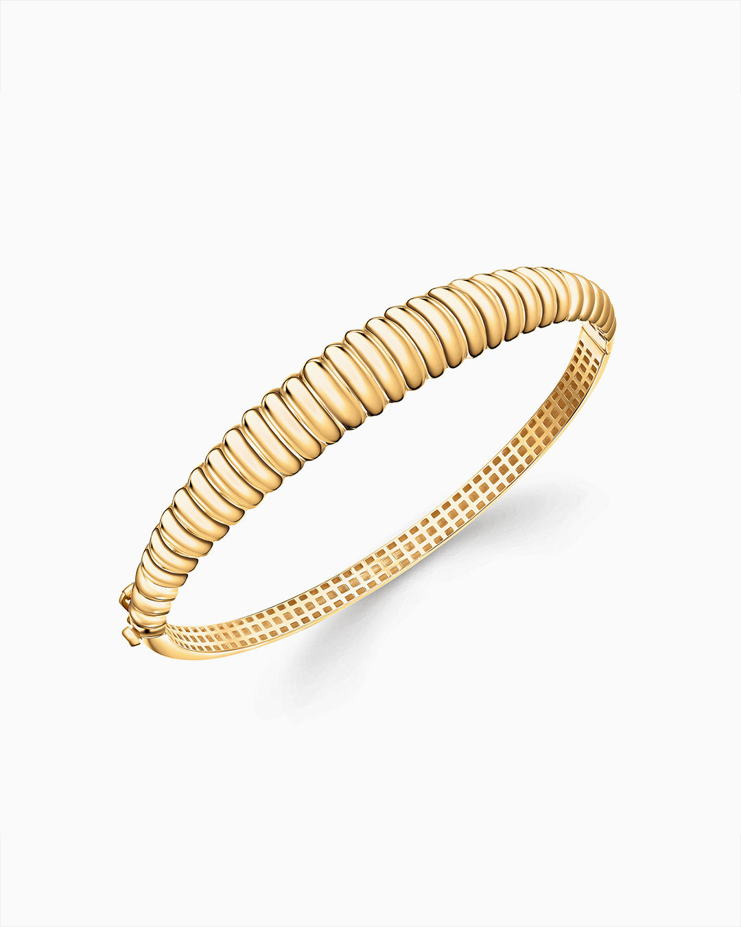 Pulseira Duomo Bold feita em ouro amarelo 18 quilates. A coleção Duomo é inspirada na cúpula nervurada, um elemento arquitetônico imponente e de grande valor simbólico. Nossos designers queriam capturar a sensação de admiração que essas maravilhas estruturais provocam, bem como a profundidade de seu impacto cultural. Para isso, eles optaram por usar linhas geométricas e um acabamento em relevo, que refletem perfeitamente a sinergia entre arte, história e design. Como resultado, a pulseira Duomo Bold representa impecavelmente o caráter inovador da Mumit e as proporções harmoniosas que distinguem nossas criações. Graças à sua personalidade marcante e versátil, ela oferece a possibilidade de elevar todos os seus looks. Combine-o com os diferentes tipos de brincos e anéis Duomo e obtenha umolharuma tendência que se adapta a qualquer ocasião.