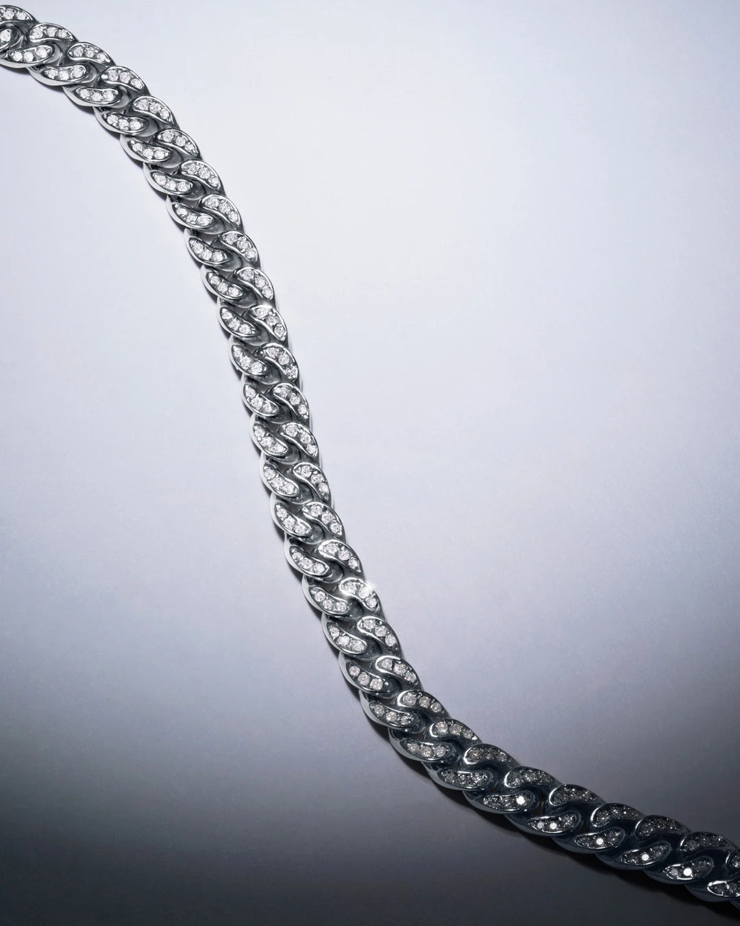 O luar representa uma metáfora entre a luz da lua cheia na pele e a profundidade do oceano. Feita em ouro branco 18K e diamantes, cada peça da coleção é uma ode ao brilho mais requintado. Um soneto perfeito que evoca liberdade, fantasia e devaneio na forma de uma joia.