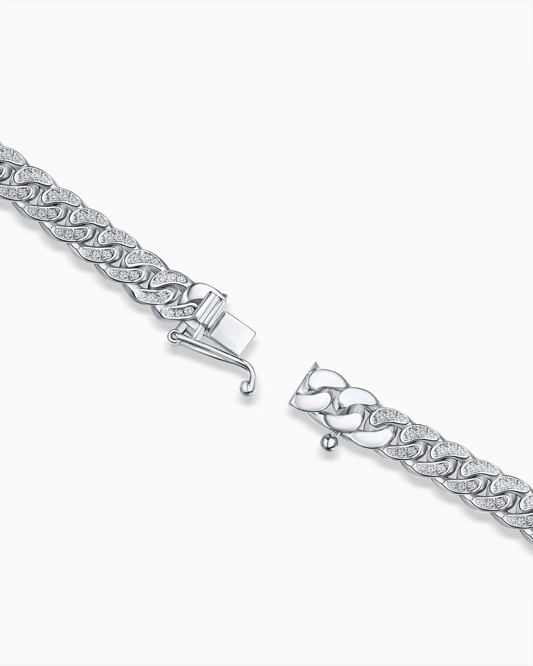 Pulseira de elos Lisse Moonlight com diamantes feita em ouro branco 18 quilates. Atemporal e deslumbrante, a pulseira Lisse Moonlight se distingue por uma corrente curva, que cria uma superfície lisa para adicionar um toque original à clássica pulseira de elos. Com um peso total em quilates de 1,15 Cts. de diamantes, cada movimento sutil do pulso se torna uma dança vibrante de luzes. Sua estética imponente combina linhas limpas com diamantes pavé radiantes, criando uma peça de inspiração arquitetônica que é cuidadosamente trabalhada e polida à mão. Descubra a elegância inigualável da pulseira Lisse Moonlight.