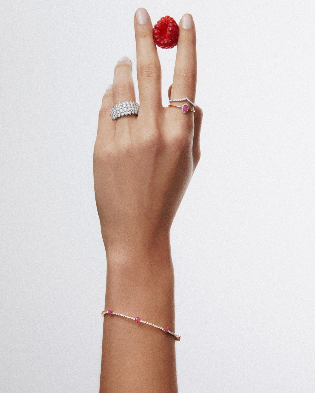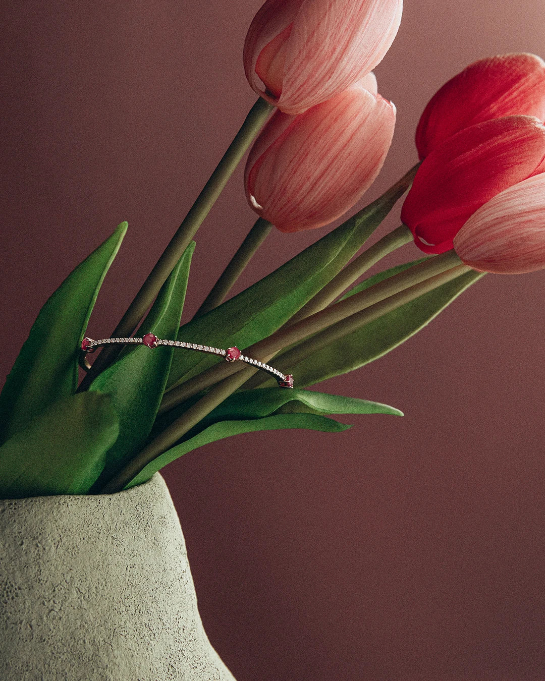 Pulseira Nina de rubi e diamante em ouro rosa 18 quilates. Nina é uma pequena, mas grande revoluç...