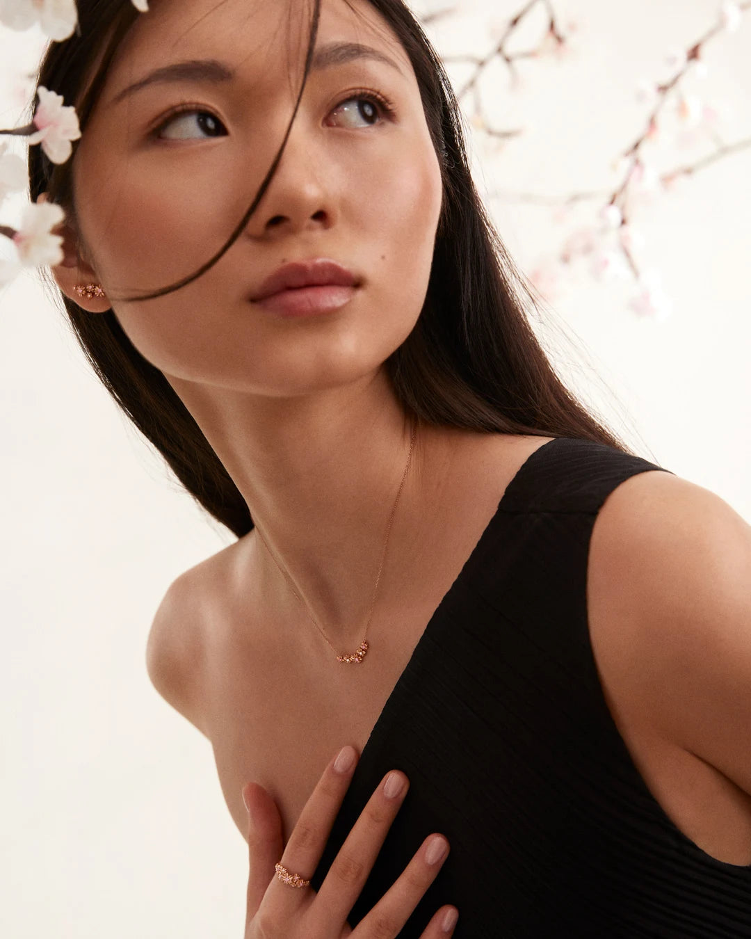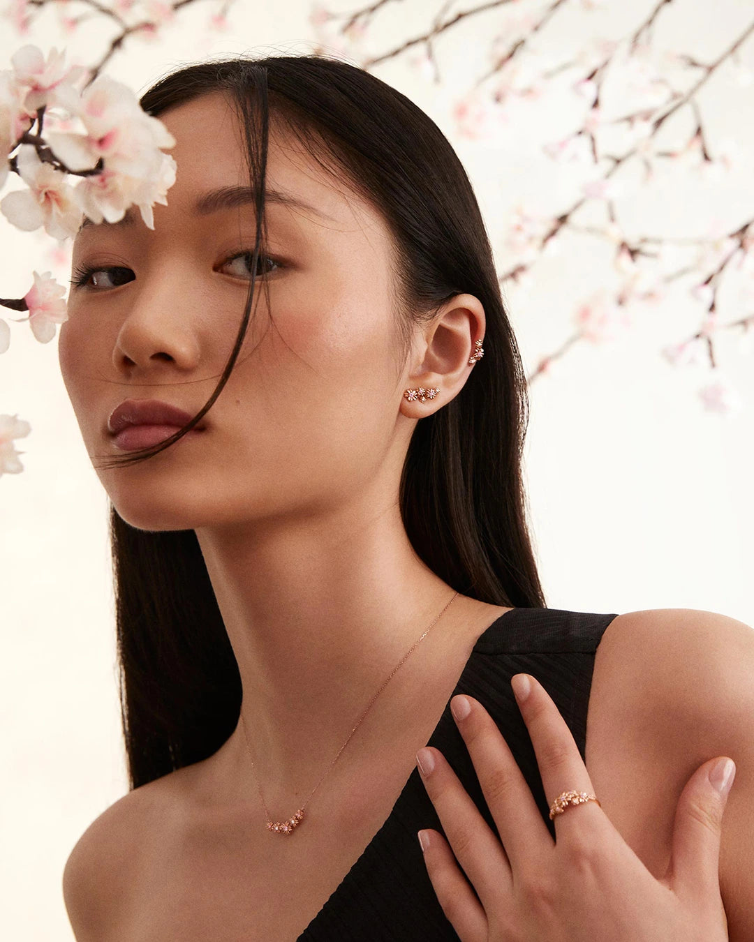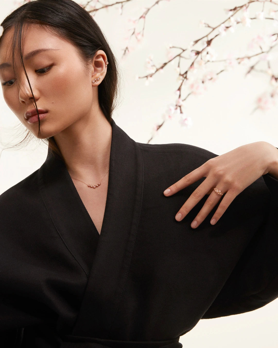 Sakura transmite a harmonia, o equilíbrio e a simplicidade tradicionalmente associados às flores de cerejeira. Sua beleza extraordinária permanece para sempre imortalizada nesta coleção requintada de joias finas.
