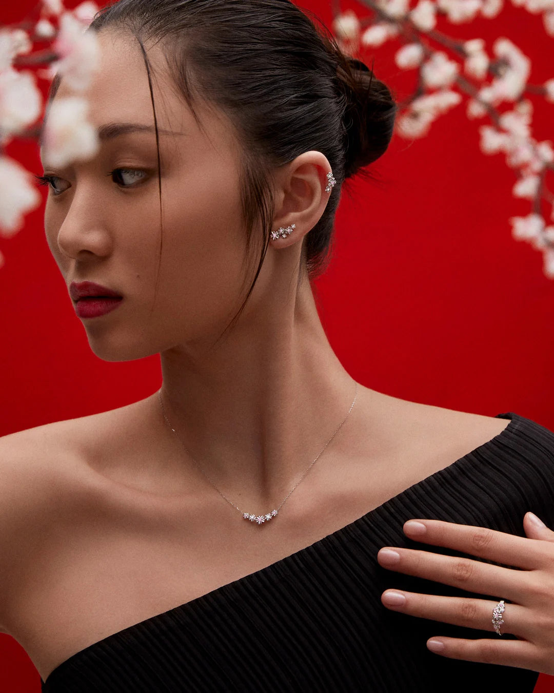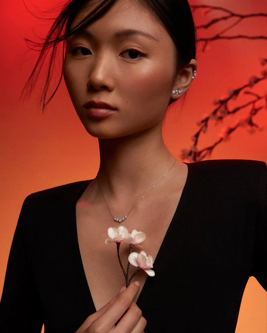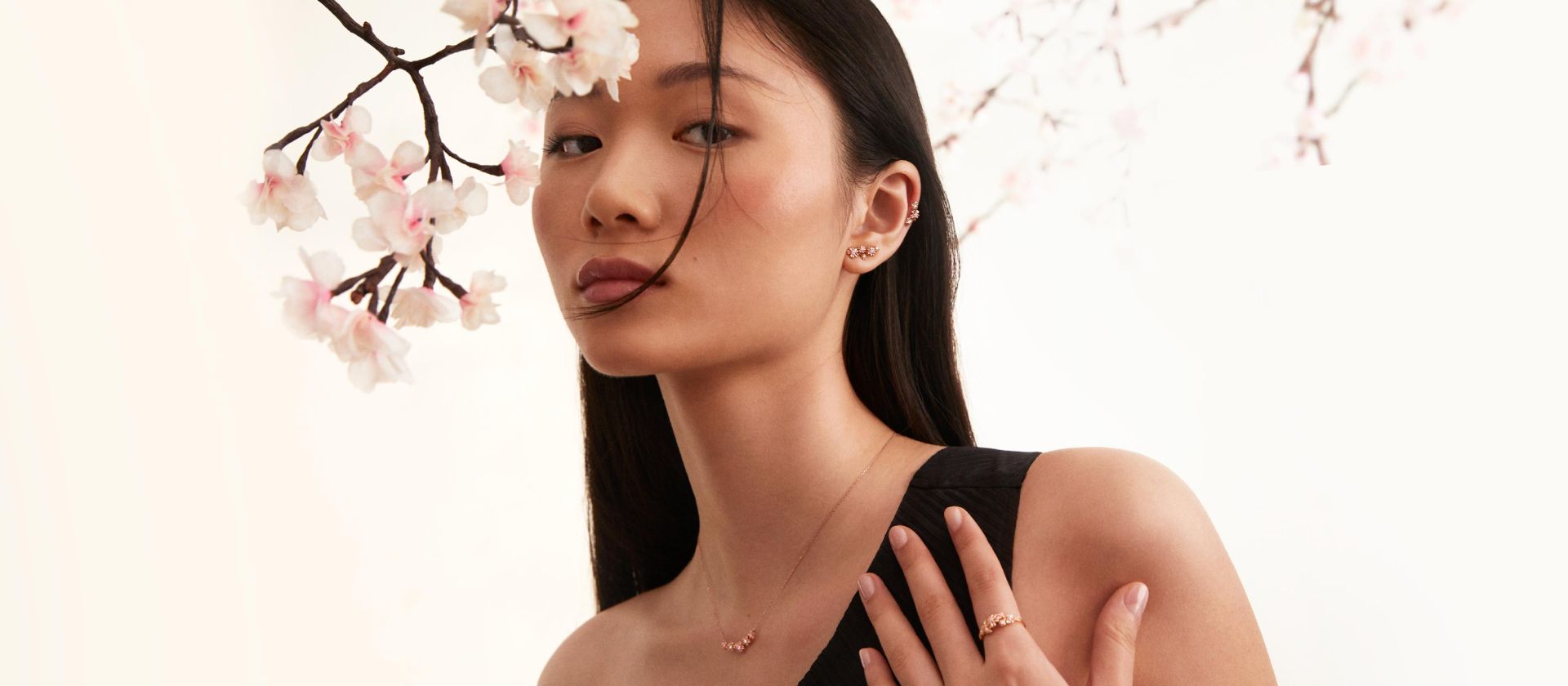 Sakura transmite a harmonia, o equilíbrio e a simplicidade tradicionalmente associados às flores de cerejeira. Sua beleza extraordinária permanece para sempre imortalizada nesta coleção requintada de joias finas.
