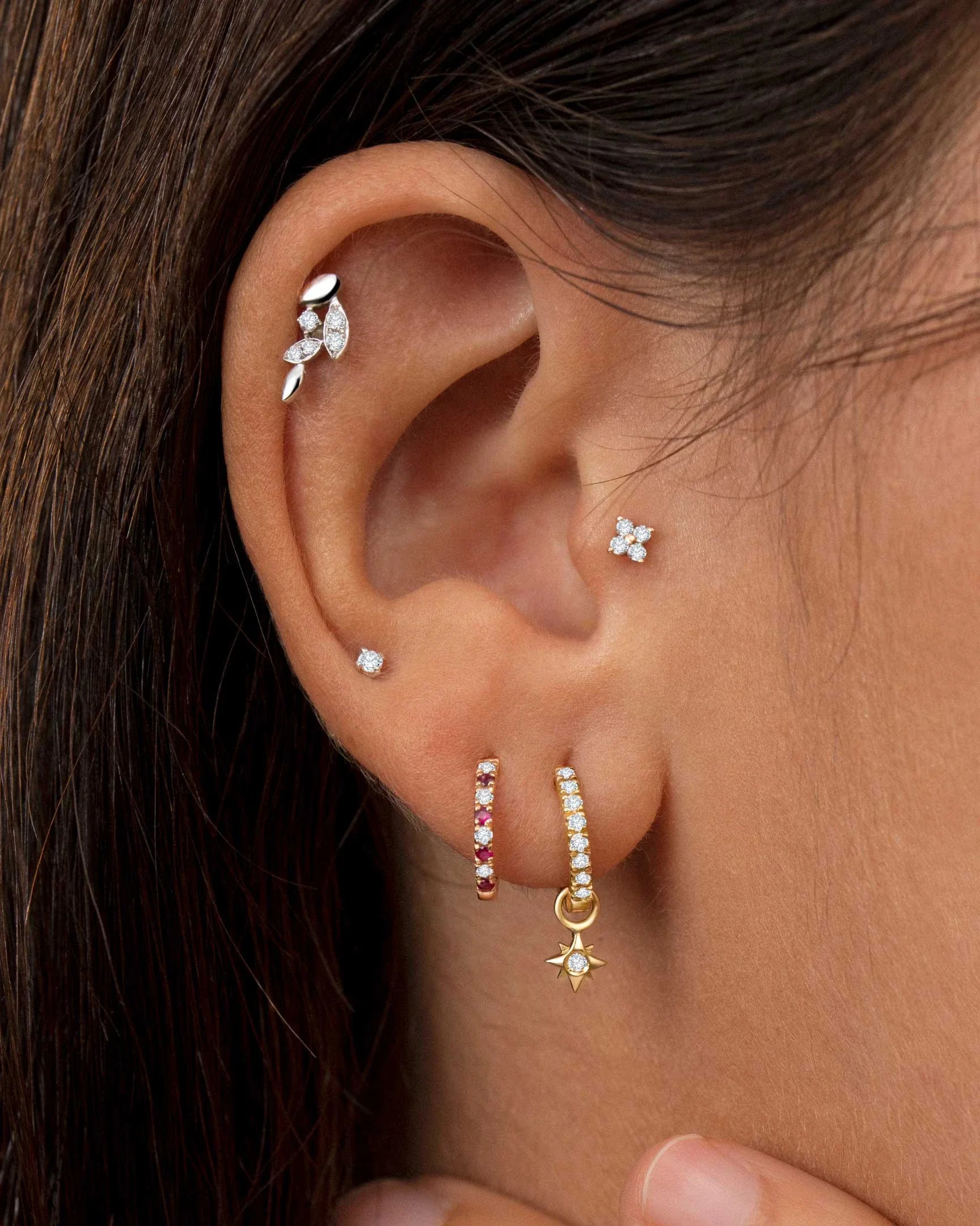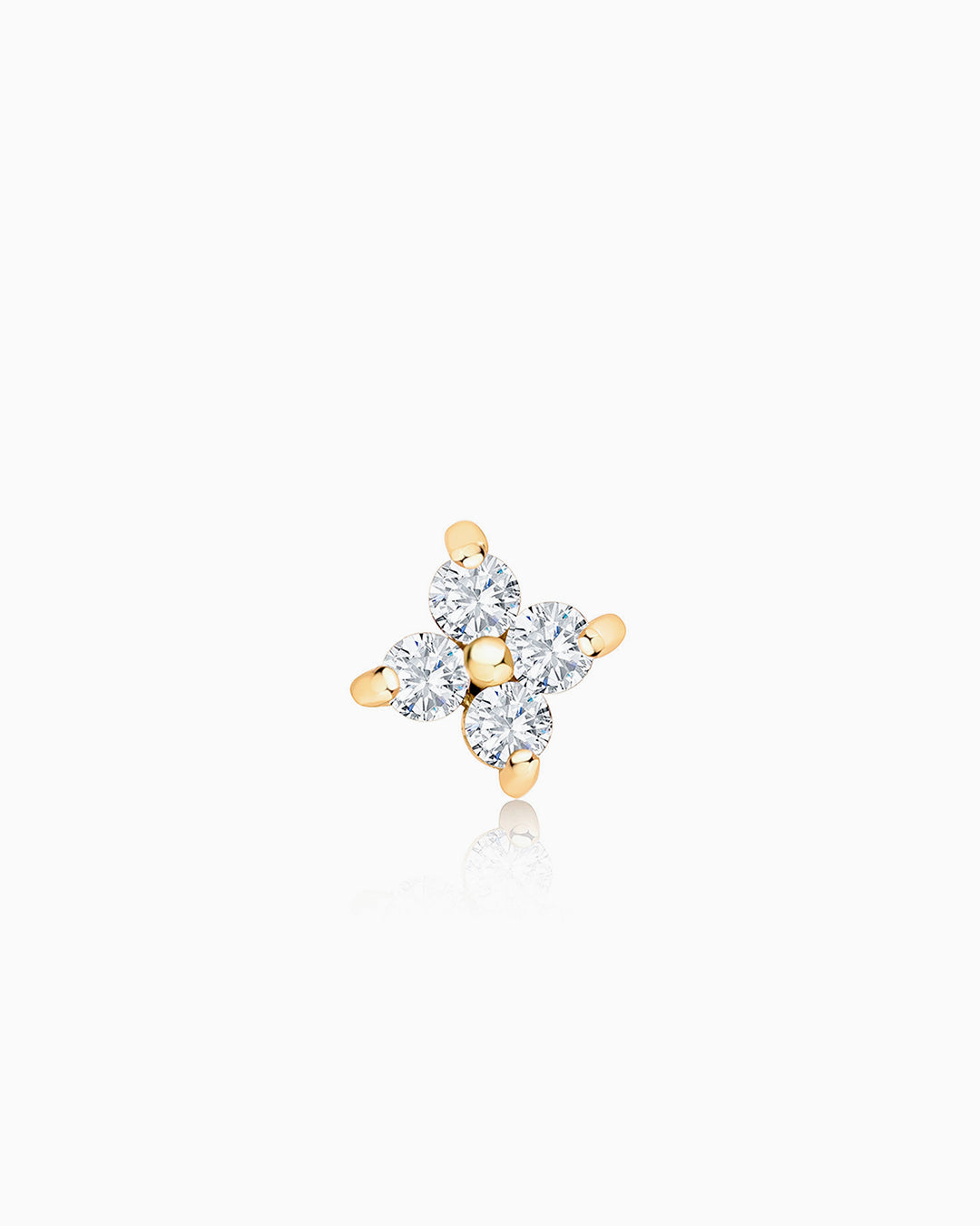 Petite Diamonds Cross Mini piercing de diamante em ouro amarelo 18K. Nossos brincos mais vendidos agora estão disponíveis em piercing. Tão delicado quanto moderno, seu design minimalista em formato de cruz formada por quatro delicados diamantes torna este brinco perfeito para ser usado tanto no lóbulo quanto na cartilagem. Possui fecho de pressão que proporciona a segurança e o conforto necessários para virar um brinco que você nem vai perceber que está usando.Se desejar, você pode encomendá-lo com um fecho de parafuso especial para hélice ou cartilagem, você pode encomendá-lo no menu acima (este extra tem um custo adicional de € 6). Além disso, você pode encomendá-lo com um fecho especial para o tragus (este extra tem um custo adicional de € 25). Junte-se à tendência da moda e crie seu look de orelha com Mumit!