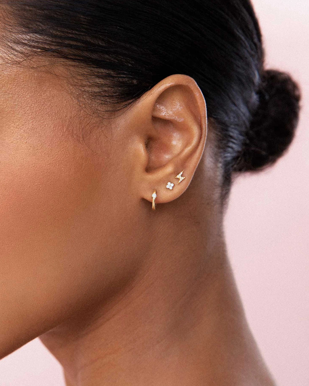 Petite Diamonds Cross Mini piercing de diamante em ouro amarelo 18K. Nossos brincos mais vendidos...